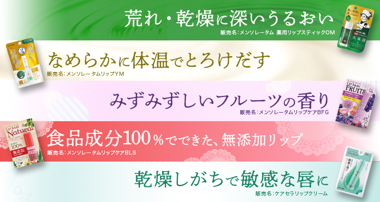 「メンソレータム ディープモイスト」は、ヒアルロン酸、シアバター、ホホバオイル(うるおい成分)配合の“高保湿”リップクリーム。くちびるの荒れ・ひび割れを防ぎ、健やかに整えます。唇の端にもフィットしやすい楕円型容器も特徴。