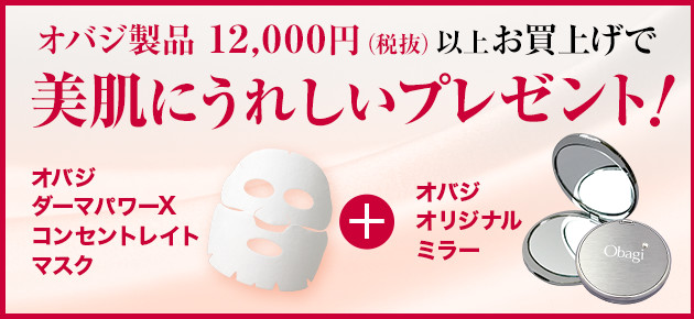 期間中にオバジ製品を合計12,000円(税抜)以上、お買上げの方に「オバジ ダーマパワーX コンセントレイトマスク」と「スワロフスキー付のオリジナルミラー」をプレゼント。