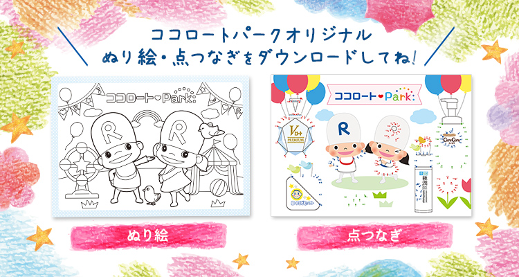 今回は、ココロートパークオリジナルのぬり絵&点つなぎをご用意いたしました。下記ボタンからダウンロードして、お楽しみください!