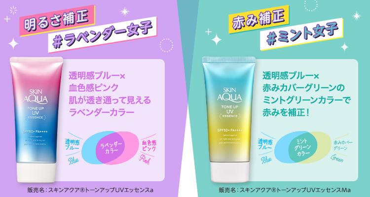 【終了】あなたはどっち派?「スキンアクア トーンアップUVエッセンス」ラベンダーorミントグリーン選べるプレゼント!