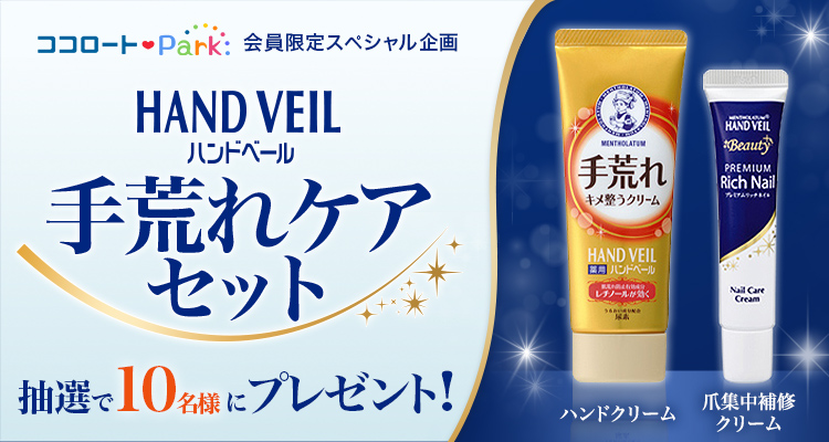 手荒れケアにおすすめのハンドベール2品をセットにプレゼントします。是非応募してね♪!