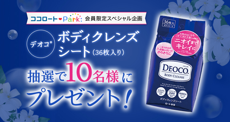 オトナ女性のニオイの元となる汗・皮脂を拭き取るボディシートデオコボディクレンズシートを10名様へプレゼント。