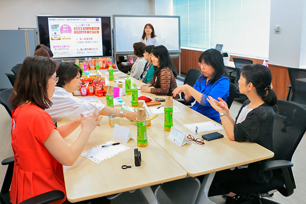 みなさん、初対面とは思えないほど和気あいあいとした明るいムードのなか、50の恵®商品を実際に試して大盛り上がり。普段から使用されているからこそのリアルなお声もいただきました。