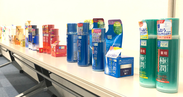 まず会場に入ると、肌ラボ®の製品が各テーブルにずらり。