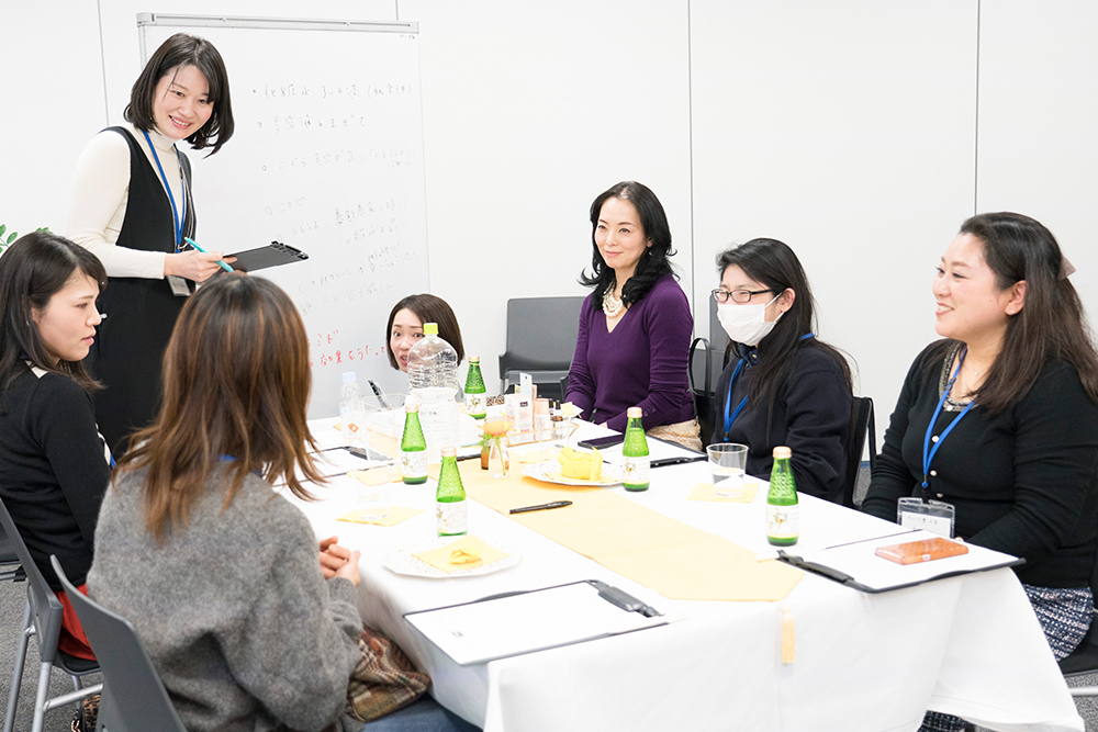 ティーブレイクもそこそこに、次はテーブルの皆さんで「オバジの使い方」を披露し合い、「オバジのキャッチフレーズ」をスタッフと一緒に考える時間です。