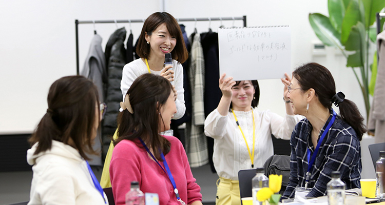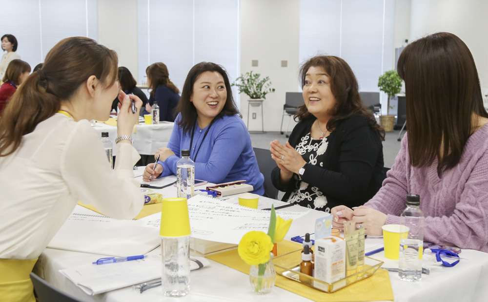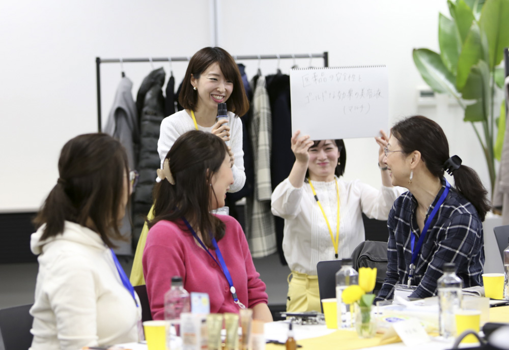 まずは、せっかくのファンミーティングなので、オバジファンの方々とロート社員それぞれが交流できるようにと、テーブルごとに自己紹介タイムがありました。新潟や静岡、一番遠い方は大阪からもおこしくださり、本当に感激です!この場では、お気に入りのオバジアイテムを1つずつご紹介。オバジとの出会いやオバジへの想いをみなさまで語っていただきました。
