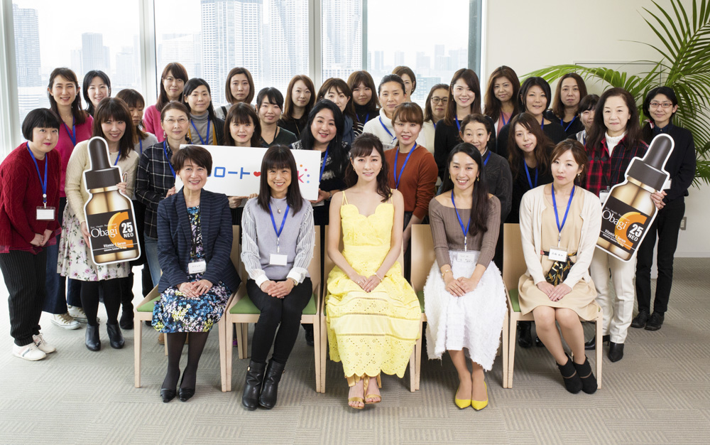 最後は全員で記念撮影。ObagiC25セラム NEOの魅力をすでに感じ取っていただいたようで、私たちスタッフもさらに、この商品に対する自信を深める事ができました。
