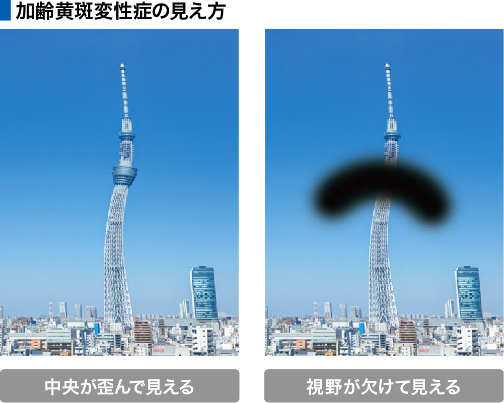 最近の研究では、物の詳細を見分けたり、文字を読んだりするのに重要な眼底部分「黄斑部(おうはんぶ)」にダメージを受ける「加齢黄斑変性症(かれいおうはんへんせいしょう)」という病気に紫外線の影響があることが分かり、話題になっています。「加齢黄斑変性症」は、失明に直結する恐れがある病気。初期の段階は、物がゆがんで見えたり、視野の中心が暗くなったり、欠けたりする症状が現れます。私たちは普段、左右両方の目で物を見ているため、片方の目だけがこの病気になった場合、末期の症状になるまで気が付かないケースが多くあります。初期の段階で眼内注射や手術をすれば、改善の余地がある病気なので、定期検診をしっかりと受けていただきたいですね。