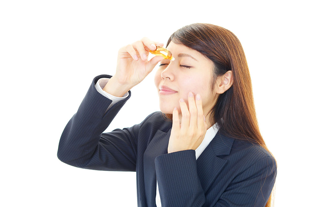 パソコンを使っている時には、1時間に1回程度ディスプレイから目を離して遠くを見る、つまり焦点を合わす場所を変えるとリラックスできますよね?パソコンによる疲れ目の時に目薬をさすと、薬剤の効果で目の緊張状態をより緩和できますよ。仕事中など、ほっと一息という時に、目薬を使うのもおすすめです。
