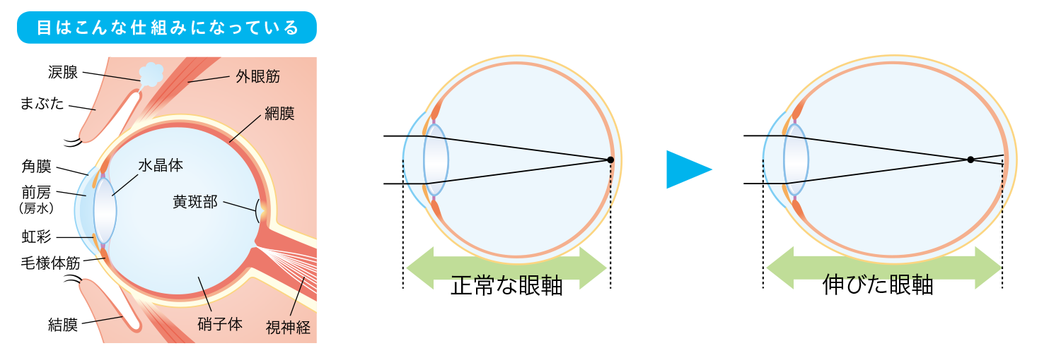 ※眼軸とは : 角膜前面から網膜までの軸線を指す