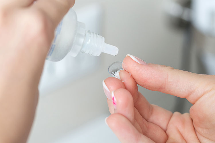 継続使用するコンタクトは、毎日のこすり洗いが必要です。ハード用、ソフト用それぞれの専用液を使用し、指で30秒ほどやさしくこすりましょう。ソフトの場合は、洗浄に加えて消毒ケアも必要になります。
