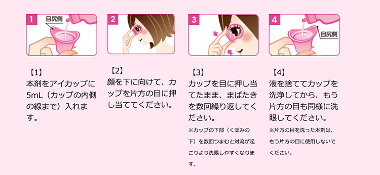 ※洗眼は目の中の異物を洗い流すために行うケアです。洗いすぎは目に負担をかけることもあるので、1日当たりの回数を守ってご使用ください。