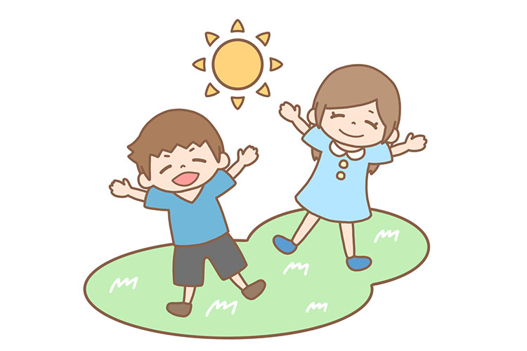 屋外活動が長い子供は近視になるリスクが低いことが報告されています。理想は1日2時間以上です。学校の休み時間などは外で遊ぶようにしましょう。