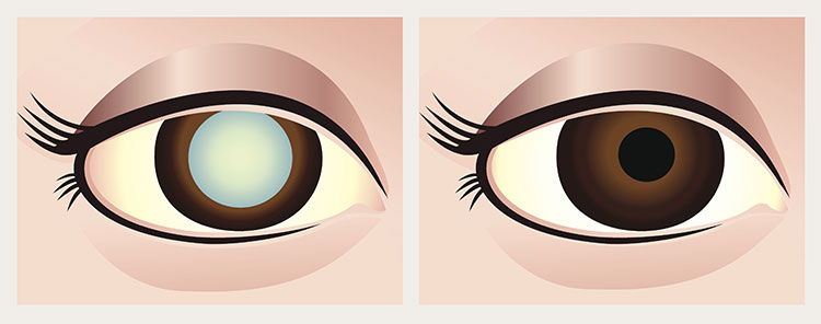 一度濁った水晶体を透明に戻すことはできませんが、初期の段階なら点眼薬で進行を遅らせることができます。ただし、進行すると視力が低下し、眼鏡でも矯正できなくなって日常生活に支障が出るので、手術を受けるのが一般的です。