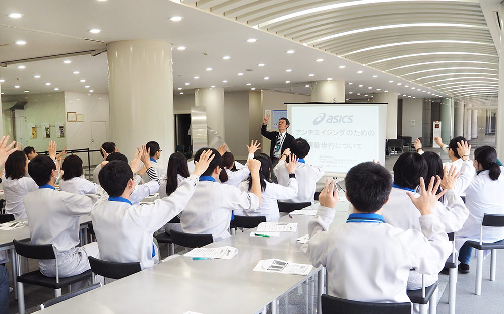質の高いウォーキングを通じて、もっと多くの人に健康になってほしい。そんな想いから、ウォーキングのプロであるアシックス社の講師をお招きして開催したセミナー。