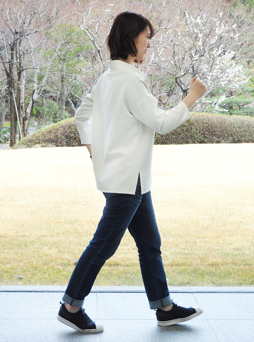 ビフォーは決してわざと姿勢を悪くしているわけではないのですが、なんだか猫背気味でトボトボと歩いているような印象です。