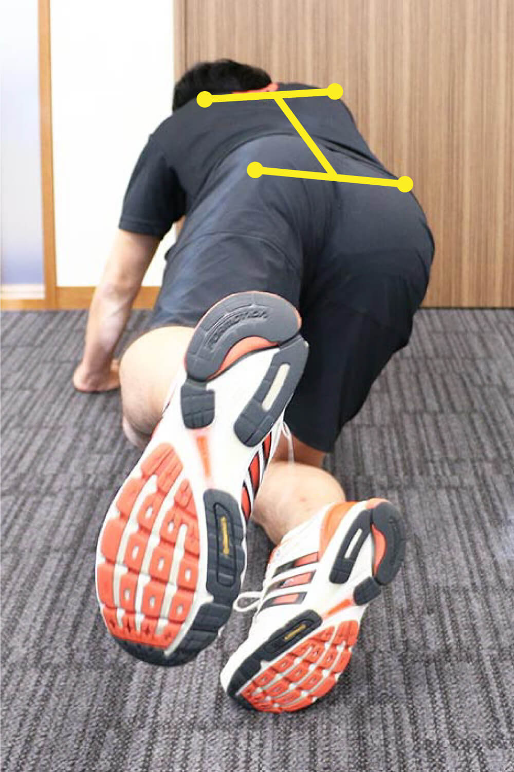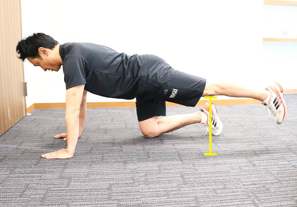 ③四つん這いになった時、背筋が曲がったり脚を上げた時、全身が傾むくとNG!