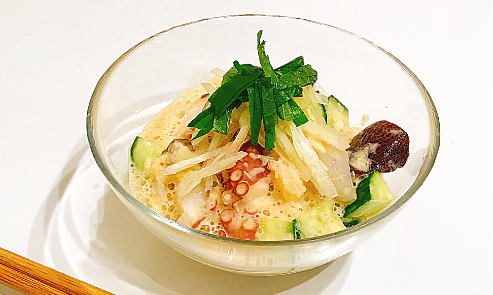 帆立とタコの長芋ドレッシングかけ