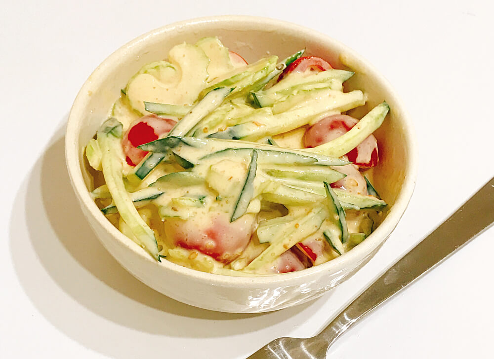 体の余分な熱を取り除いてくれる夏野菜には、美肌の源・ビタミンがたっぷり!さらにヨーグルトを組み合わせることで、紫外線ダメージを受けた肌に元気とうるおいを与えます。マヨネーズとハチミツをプラスして、ヨーグルトの酸味を抑えたマイルドな味わいに。市販の豆ミックスなどを加えると食べ応えがアップするので、ダイエット中にもおすすめです。