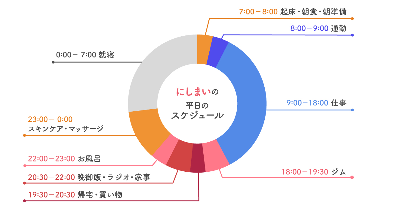 「健康のために!」と特別がんばっていることはないのですが、無理せず続けられるちょっとしたこだわりはいくつかあります。例えば、朝ご飯を欠かさないのはもちろん、野菜・果物も一緒に摂るようにしたり、通勤中は早足で歩いたりしています。ストレスが溜まらないように、よく話し、よく笑うのも疲れを取るには有効ですよ!