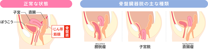 ゆるんだ骨盤底筋群は、身体の回復と共に少しずつ元に戻っていきます。しかし、骨盤底筋群が元に戻らずゆるんだままになると、尿もれ以外に「骨盤臓器脱」を引き起こす可能性があるため注意しましょう。