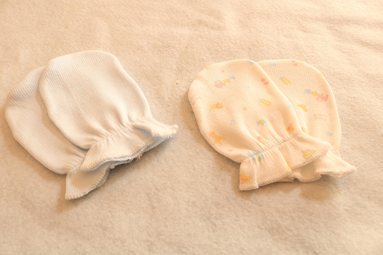 赤ちゃんの手にはたくさんの神経があります。直接触ることで刺激となり、赤ちゃんの脳の発達にも影響しています。なので、ミトンをすると刺激が少なくなるため、できるだけ使わない方がいいでしょう。