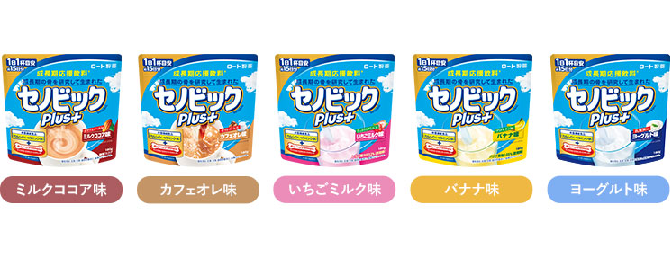 子どもだけではなく、大人にとっても、日常の食事だけでは不足しがちな栄養素の摂取が、コップ1杯の牛乳に混ぜるだけでできるので、普段の食事に+αして、家族みんなで一緒に始めてみるのもオススメです。セノビックPlusは、美味しい5つのフレーバーがあり、牛乳が飲めるようになった子どもから、大人までお飲みいただけます。