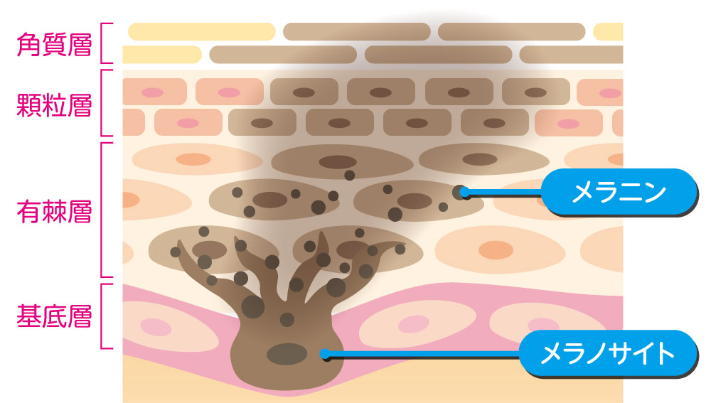 スキンケアの際に強くこするなど、肌を摩擦することで起こりやすいのが、肌表面の角質層の細胞が剥がれ、皮膚が薄くなってしまう肌トラブル。肌のバリア機能が低下してしまい、ちょっとした刺激で肌荒れを起こしやすくなります。また、摩擦により肌に弱い炎症が起こると、メラノサイトが刺激されて、くすみやシミの素となるメラニン色素が過剰に作られることがあります。