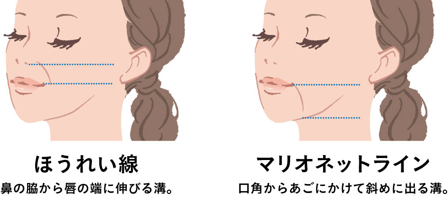 さらに詳細に研究を進めていくと、ほうれい線の原因となっているのがフェイスライン自体のたるみだということも確認。顔全体のたるみが、線(=しわ)へとつながり、より老けた印象を与えてしまうのです。