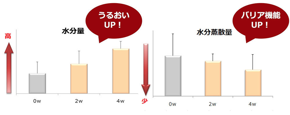 ※3 洗浄+保湿を4週間持続した時のすねの角質水分量の変化とバリア機能の指標として系表皮水分蒸散量の変化を調べた。(ロート調べ n=10)