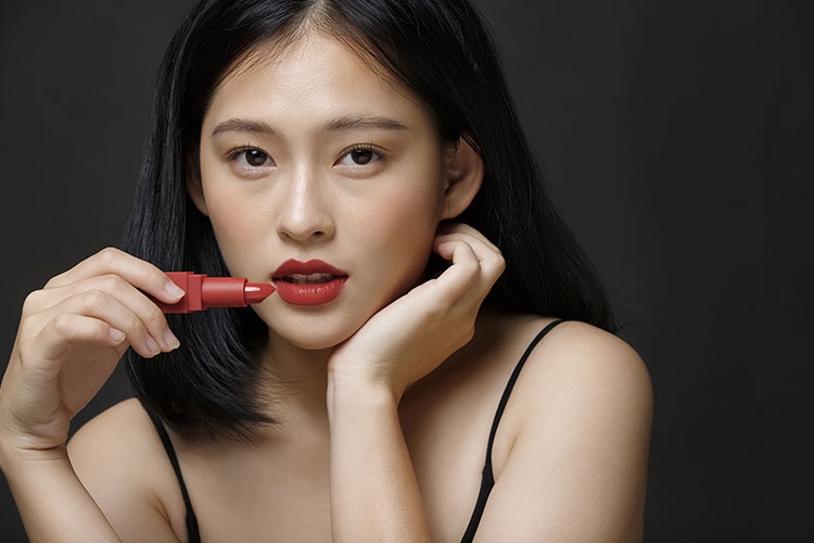 中国女性は、手っ取り早くメイクしている感を出すために赤の口紅だけを使っていますね。ただし、発色のいい口紅を使う場合は、きちんとラインを取らないときれいに仕上がりません。そこで、赤い口紅初心者は、まずはほどよい発色の色付きリップから始めてみましょう!
