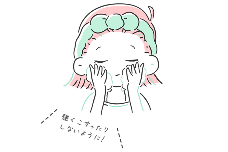 ① 洗顔は泡でやさしく。ゴシゴシ禁物&1日2回まで
