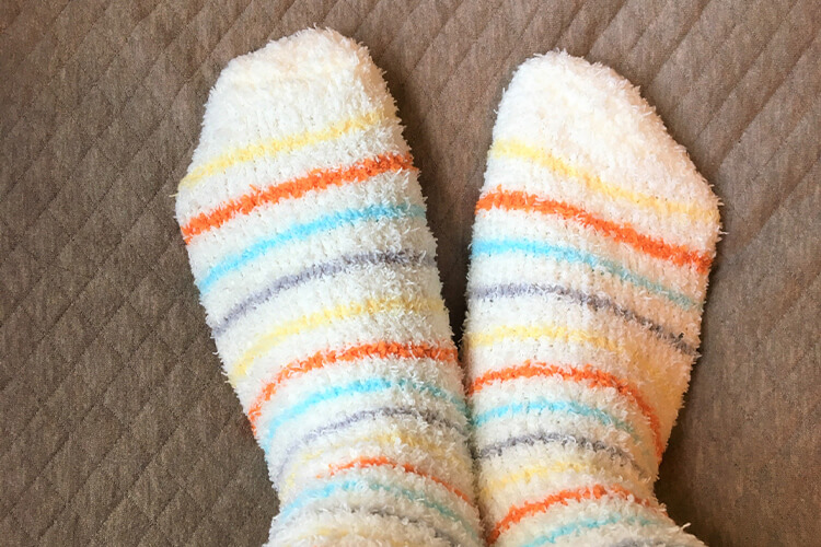 さらに気をつけたいのは、冷え対策で着用する、“ふわもこ靴下”なども乾燥を引き起こす原因になる可能性があること。実は、これらは化学繊維で作られていることも多いため、足裏から水分を奪ってしまうのです。
