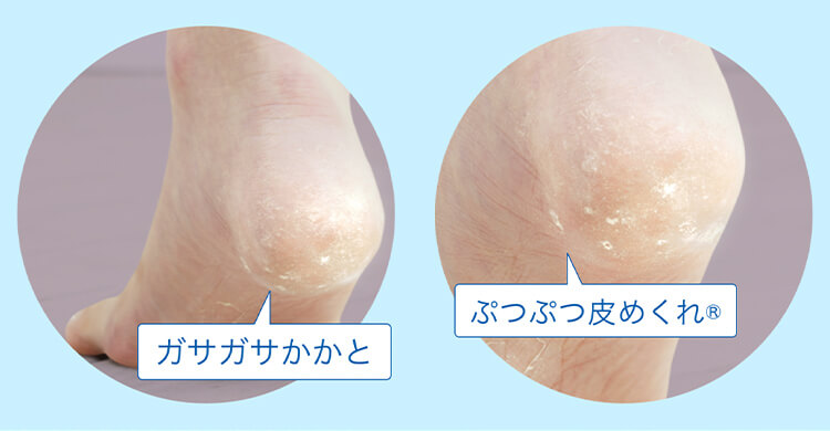 ひどく乾燥し、硬く厚くなったかかとには、水分を保持し、角質を柔らかくする機能のある尿素配合のクリームがオススメです。「メンソレータムやわらか素肌クリームU」は、高い保湿力と角質柔軟効果を持つ尿素20%配合。さらに、血行や新陳代謝を促進するビタミンE誘導体も配合した「角質柔軟処方」の医薬品クリームです。ガサガサに乾燥しコチコチに硬くなった角質を、健康なやわらか素肌へと導きます。