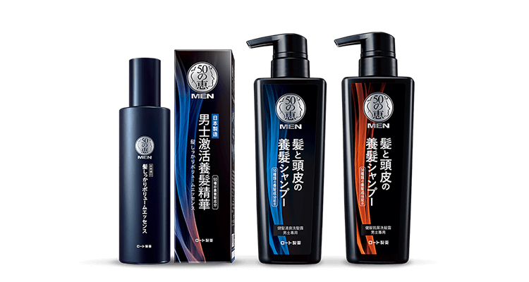 「50の恵」の育毛剤を発売後、市場調査やお客様へのインタビューを進めるうちに、男性のユーザーが一定数いることに気づいたのです。抜け毛の改善や髪のハリ・コシの回復を求めて使っていたり、商品を使って効果を実感した女性がパートナーに勧めたケースもありました。男性も、女性と同じように髪のエイジングケアを求めていたのです。
