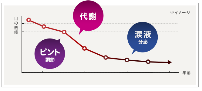 目を覆う涙を、分泌する機能や保持する機能は、年齢とともに低下してしまいます。