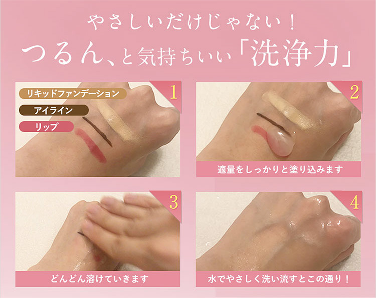 美容液成分※6がメイクを浮かせて落とし、肌へのやさしさを考えて作られています。