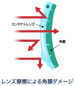 どんな人でも、コンタクトレンズをつけていると、瞬きのたびに起こる摩擦などで角膜に傷がつきます。若い頃は、寝ている間にその傷を修復できるのですが、年齢とともにだんだん修復しきれなくなり、ダメージが蓄積し、目が疲れるのです。