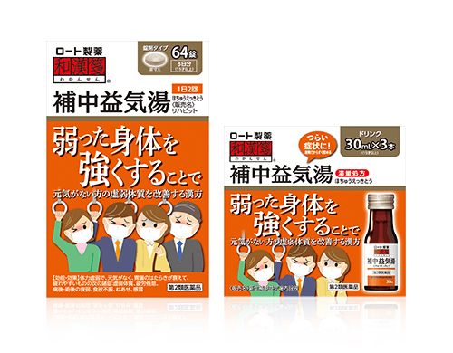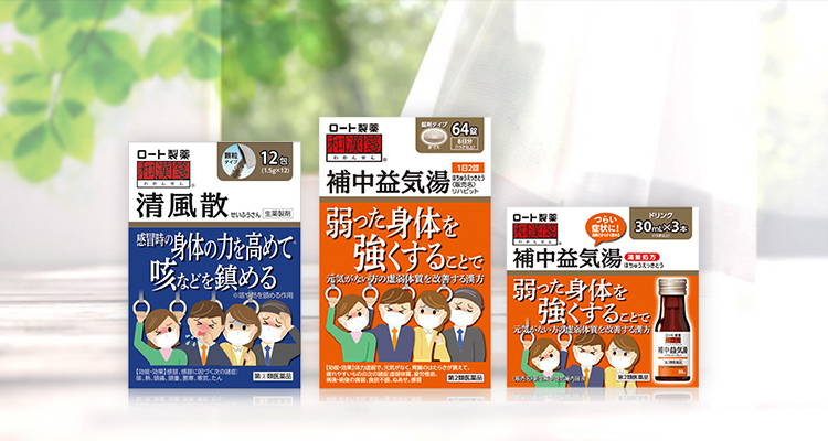 体調がいつもと違うなと感じたときは、焦らず、ゆっくり休養をとることが大切。疲れてだるかったり、食欲がわかなかったりする人には、漢方薬も効果的です。ロート製薬のサイエンスを漢方・生薬にそそぎ込み誕生した「和漢箋」は、皆さんを取り巻く環境や生活習慣に着目し、現代人に効く漢方・生薬を目指しています。その和漢箋シリーズから、弱った身体(虚弱体質)を回復する「補中益気湯」、発熱、せきなどの風邪の症状に効果を発揮する「清風散」をご紹介します。