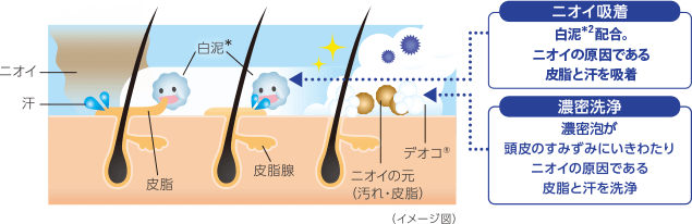 【ニオイのもとになる皮脂等をしっかり除去する洗浄力】