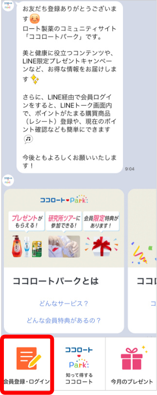 ココロートパーク公式LINEと友だちになり、