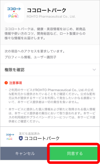 認証画面で「同意する」を選択。